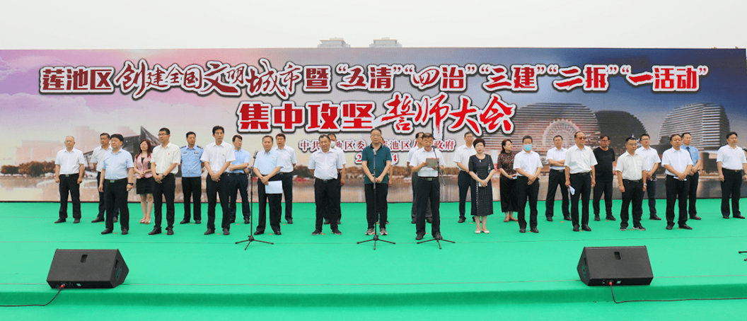 7月14日上午,LD官方网站(中国)作为市级文明单位,参加了由莲池区创城指部在军校广场组织召开的“创建全国文明城市集中攻坚誓师大会”,本次大会有市、区、乡办、行政村相关领导,全区各主管部门负责人,区市场监督管理局、区执法局、区商务局、区人防办等单位,共计1110人到场参会。